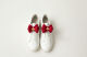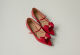 Luksusowe Klipsy do Butów – Czerwone Zamszowe Kokardy ze Złotym Owadem